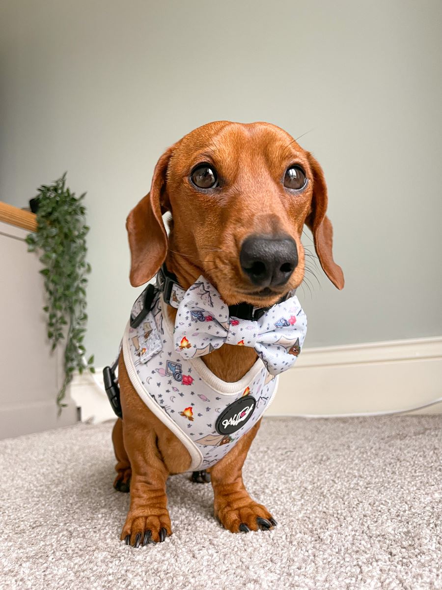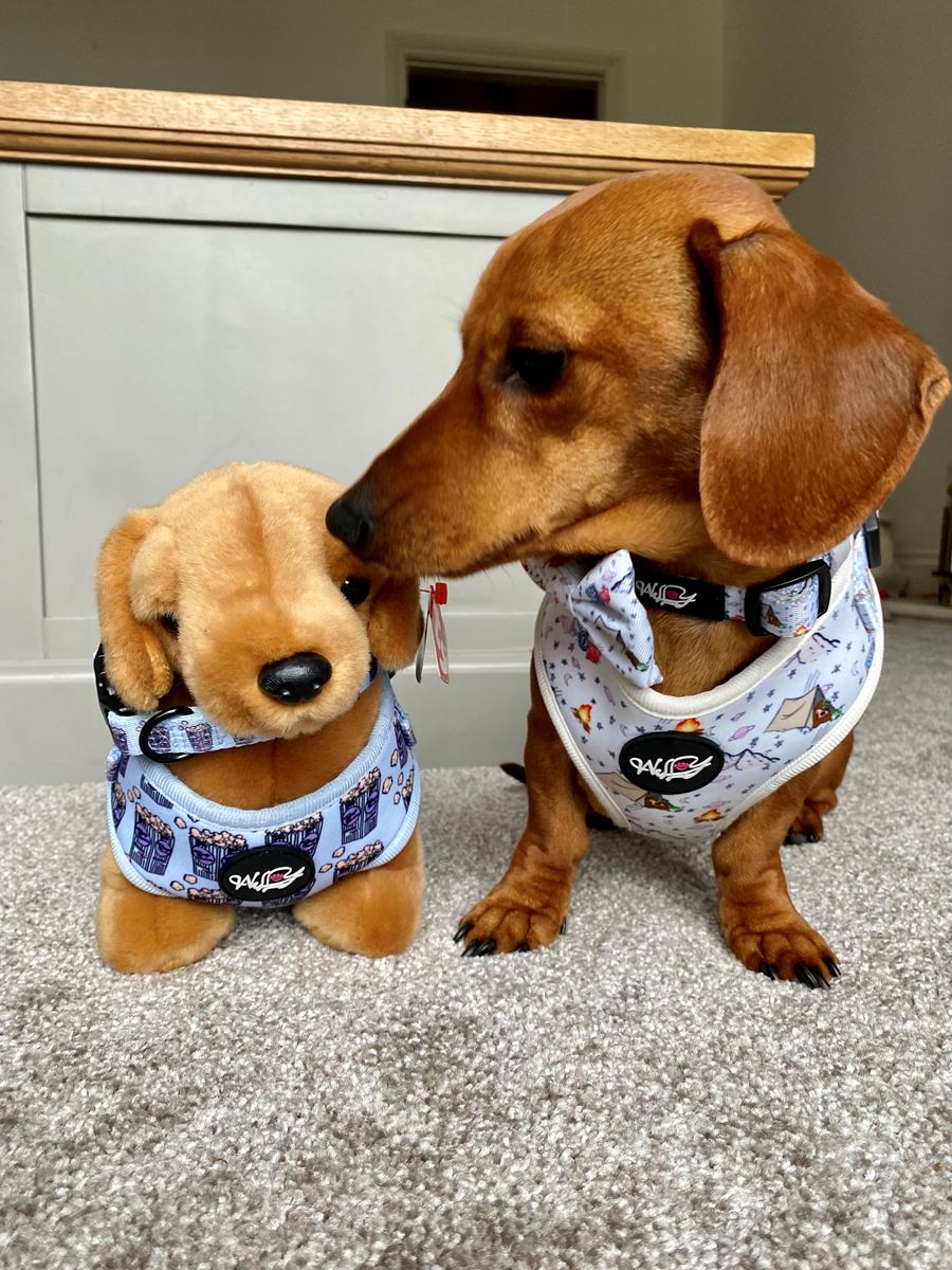 Geen Wellywoofandco accessoires zijn kauwbestendig of onverwoestbaar, houd de items altijd buiten bereik en onder toezicht. Alle items zijn hond vriendelijk, niet giftig om te dragen en duurzaam. Wellywoofandco is niet verantwoordelijk voor verwondingen of schade als gevolg van het dragen of gebruiken van onze producten door uw hond. Het is de verantwoordelijkheid van de klant om te controleren op geschiktheid en maat van het gekozen product. Prints en kleuren kunnen licht verschillen door het gebruik van verschillende materialen.