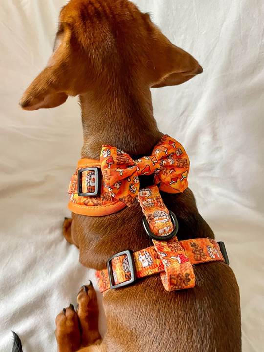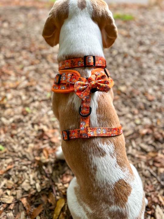 Geen Wellywoofandco accessoires zijn kauwbestendig of onverwoestbaar, houd de items altijd buiten bereik en onder toezicht. Alle items zijn hond vriendelijk, niet giftig om te dragen en duurzaam. Wellywoofandco is niet verantwoordelijk voor verwondingen of schade als gevolg van het dragen of gebruiken van onze producten door uw hond. Het is de verantwoordelijkheid van de klant om te controleren op geschiktheid en maat van het gekozen product. Prints en kleuren kunnen licht verschillen door het gebruik van verschillende materialen.