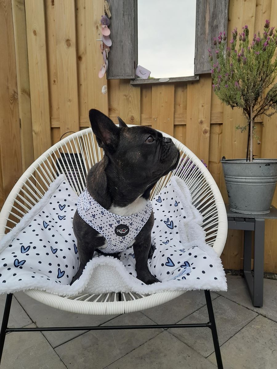 Geen Wellywoofandco accessoires zijn kauwbestendig of onverwoestbaar, houd de items altijd buiten bereik en onder toezicht. Alle items zijn hond vriendelijk, niet giftig om te dragen en duurzaam. Wellywoofandco is niet verantwoordelijk voor verwondingen of schade als gevolg van het dragen of gebruiken van onze producten door uw hond. Het is de verantwoordelijkheid van de klant om te controleren op geschiktheid en maat van het gekozen product. Prints en kleuren kunnen licht verschillen door het gebruik van verschillende materialen.