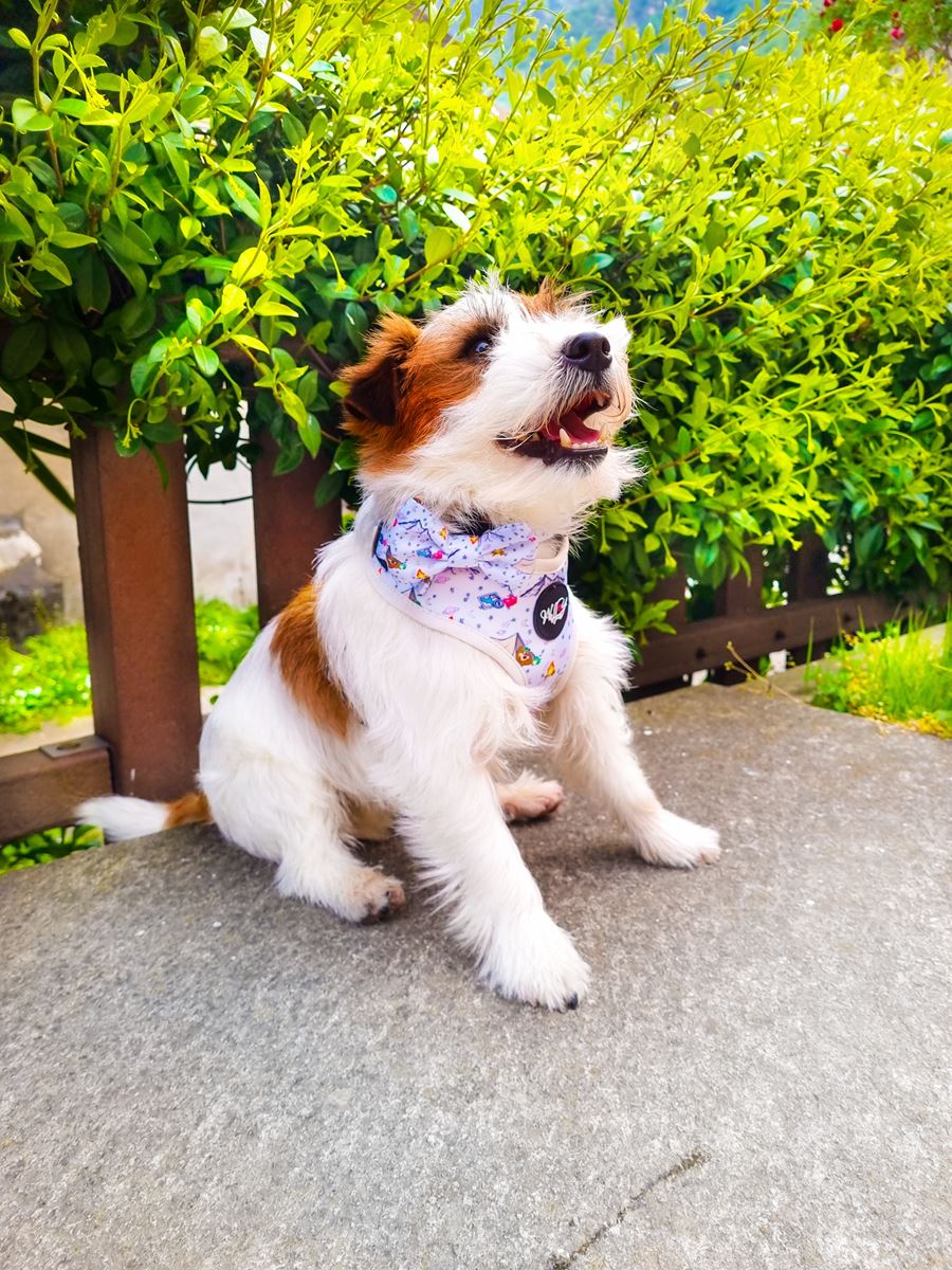 Geen Wellywoofandco accessoires zijn kauwbestendig of onverwoestbaar, houd de items altijd buiten bereik en onder toezicht. Alle items zijn hond vriendelijk, niet giftig om te dragen en duurzaam. Wellywoofandco is niet verantwoordelijk voor verwondingen of schade als gevolg van het dragen of gebruiken van onze producten door uw hond. Het is de verantwoordelijkheid van de klant om te controleren op geschiktheid en maat van het gekozen product. Prints en kleuren kunnen licht verschillen door het gebruik van verschillende materialen.